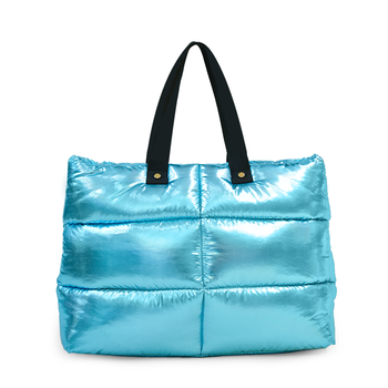 Bolso acolchado de nailon de Color metálico personalizado, bolso de hombro hinchado de diseño único de gran capacidad, bolso de mano hinchado a la moda